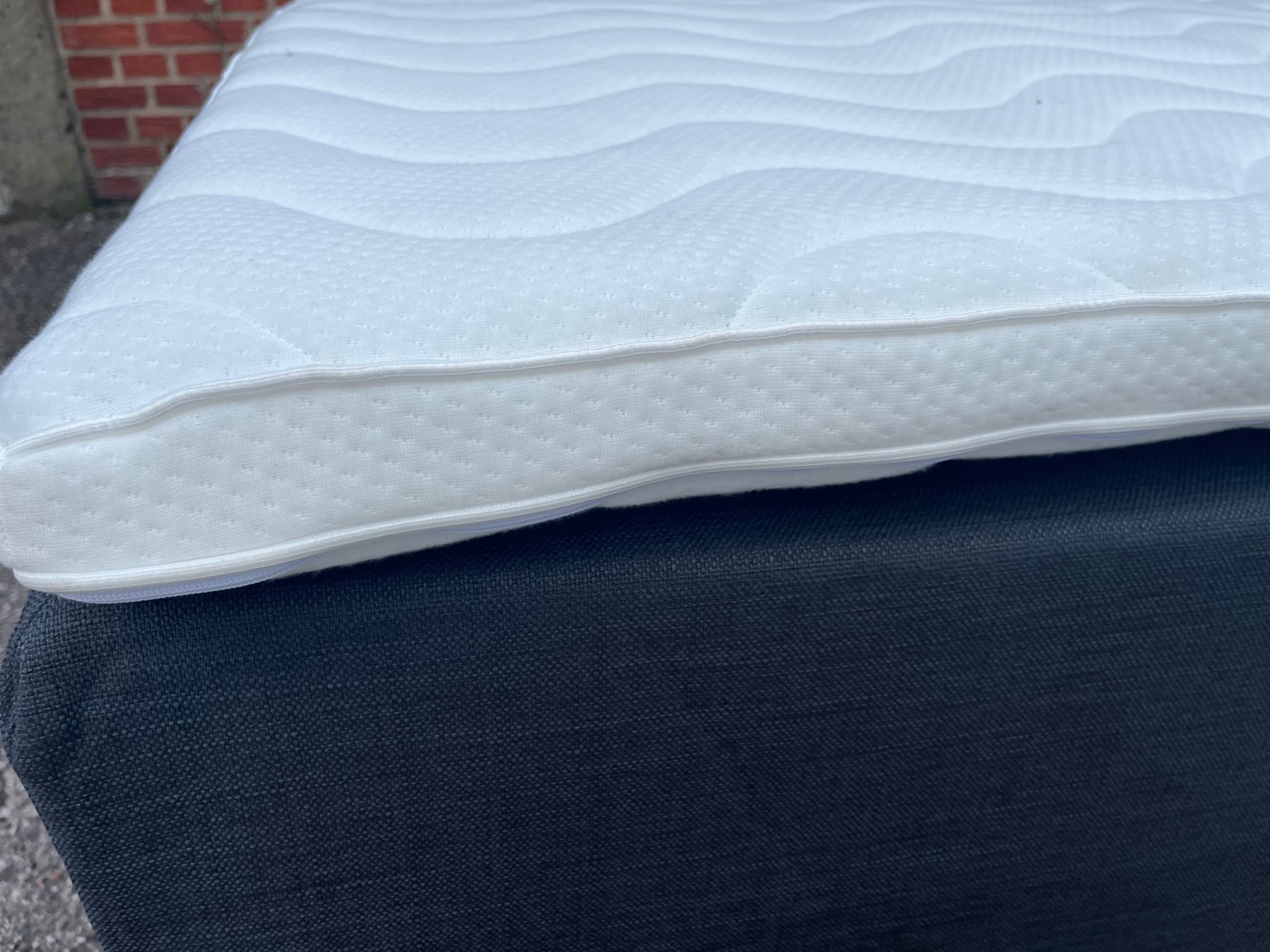 Begge madrasser er betrukket med et stort betræk, som er fastgjort i bunden med velcro, og kan således tages af ved flytning, eller når den øverste madras skal vendes.