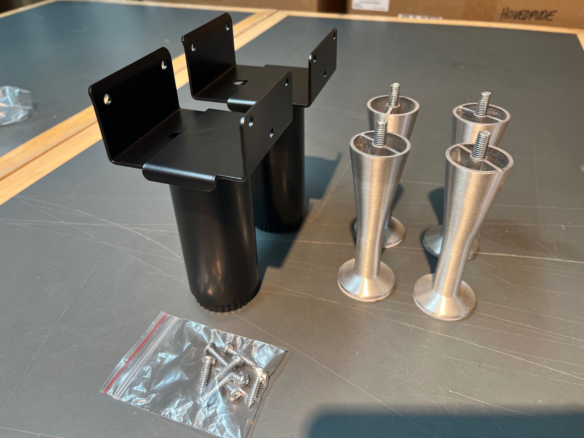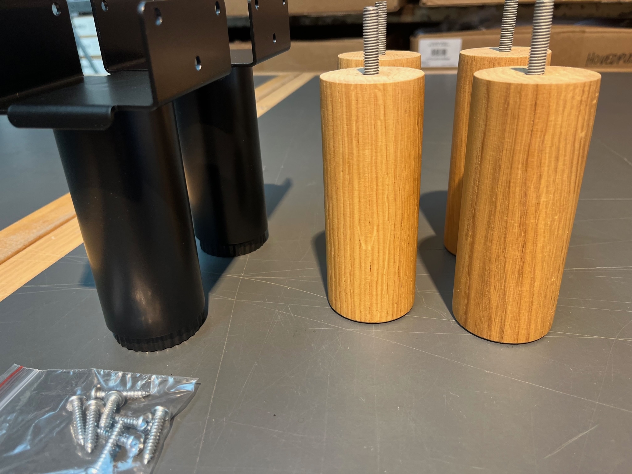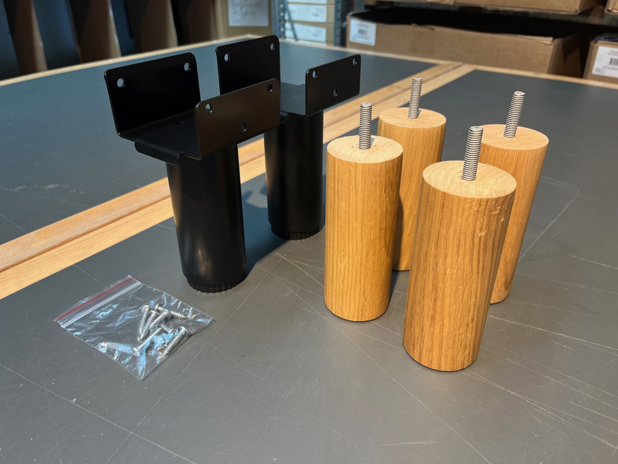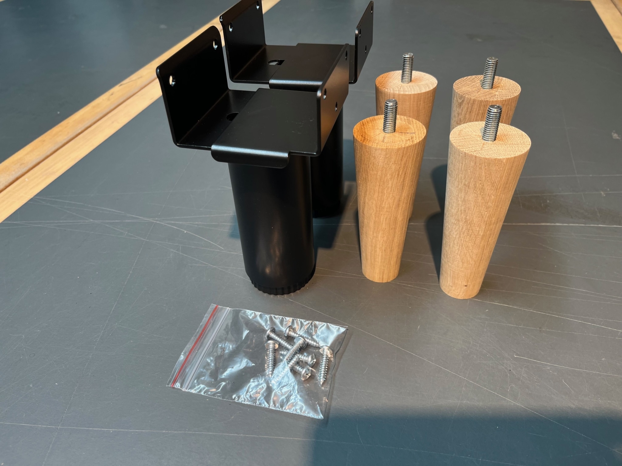 skrues fast i. Derfor medfølger beslag til de de 4 ben ikke. Er der ikke