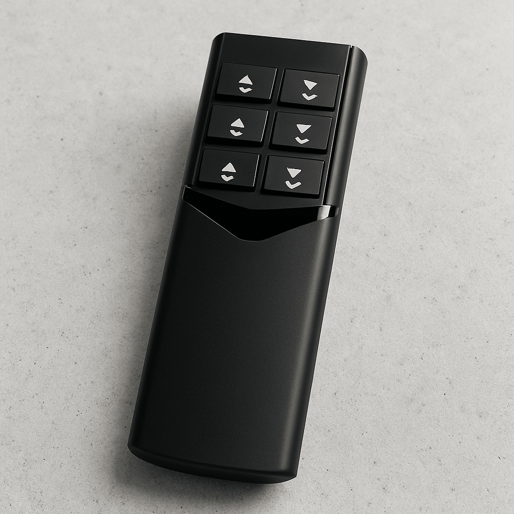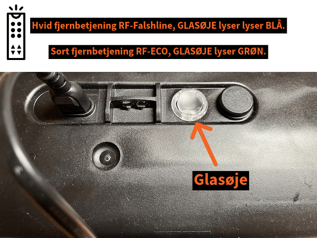 Denne fjernbetjening passer til de motorer som har et “glasøje” på siden af motoren som lyser GRØN når den parres. (hvis din motor lyser blå, skal du vælge en anden Okimat fjernbetjening (hvid) vi har her på siden model RF Flashline) Er der ikke et glasøje på siden af din motor, se eksempel i billederækken, kan du kontakte for for en 3. løsning.