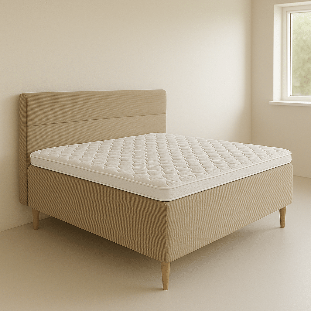 I 140 cm dette nok vores mest luksuselriøse boxmadras. Og denne udgave er med eksklusivt beige fløjl på såvel boxmadras som på sengegalven som medfølger i dette tilbud.