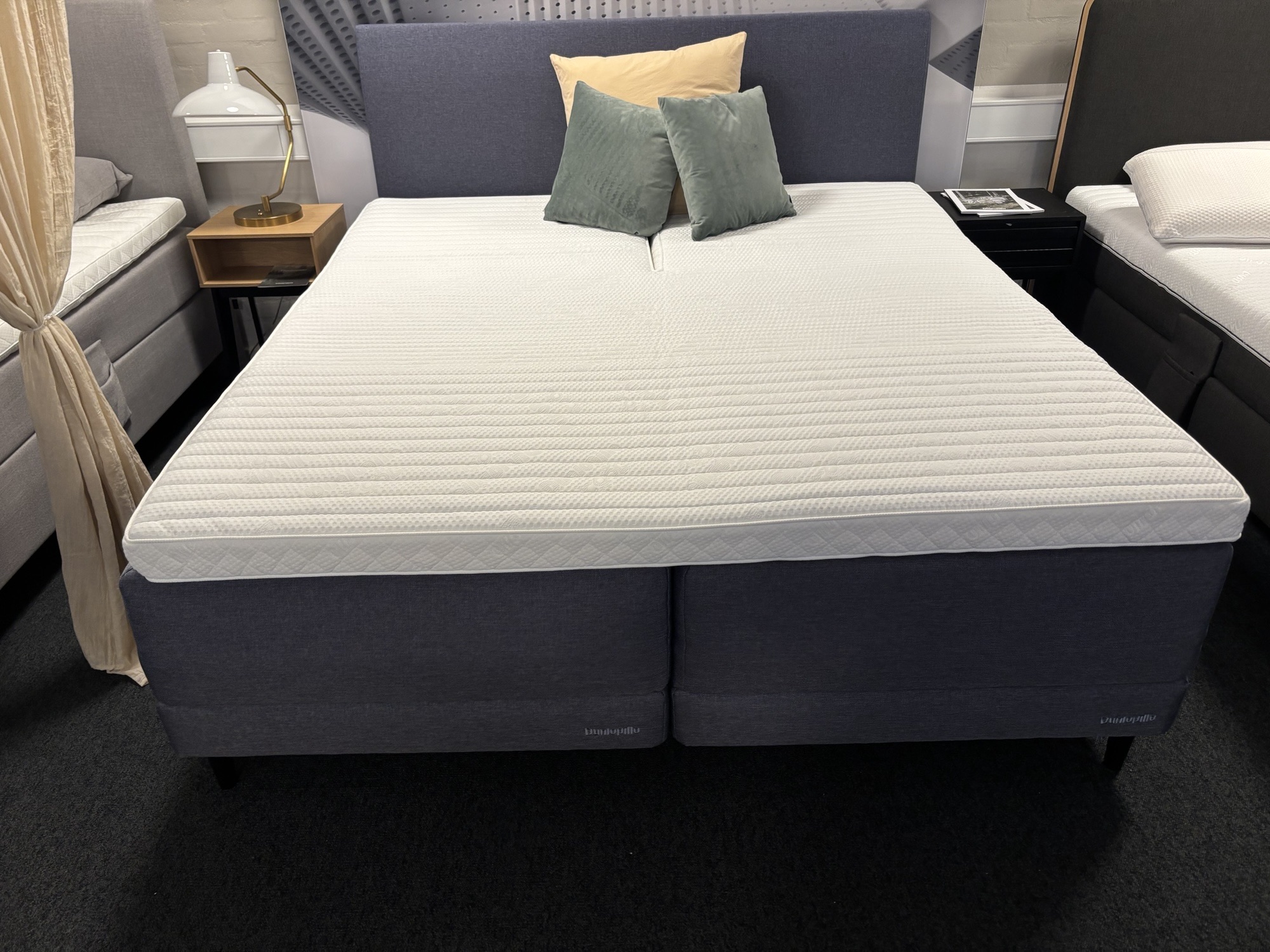Denne model sælges komplet med Dunlopillo sengegavl og Dunlopillos bedste topmadras. U-split Supreme Cool med indlæg af 70 mm. naturlatex.