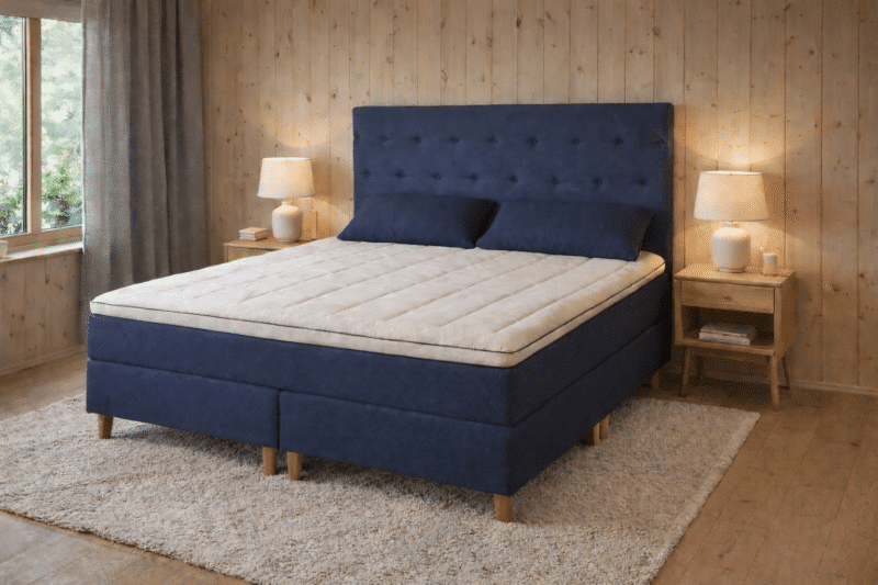 Sengen består af 2 stk. underboxmadrasser med posefjedre, 265 fj. pr. m2.