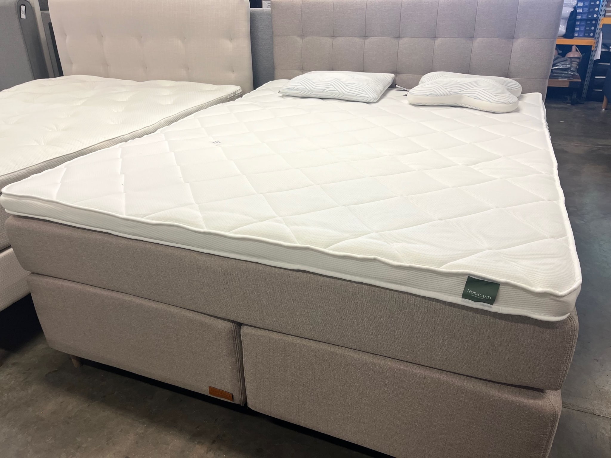 Sengen består af 2 stk. underboxmadrasser med dobb. lag af posefjedre.