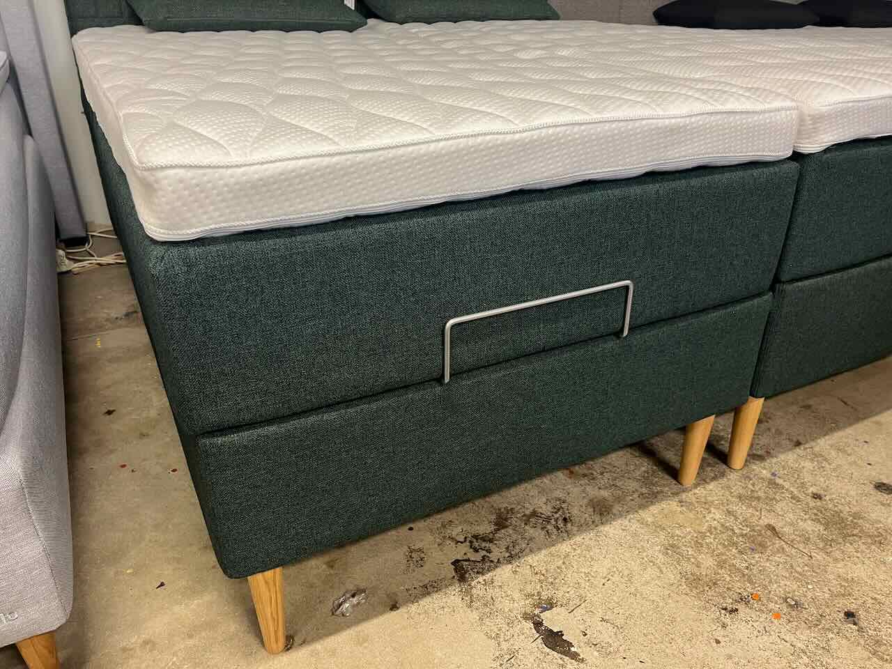 En af vor bedste elevationssenge med utrolig flot støvet grøn farvet betræk – sengegavl som matcher i farvenuance, men elegant lavet i lidt mere groft stof for at give sengen sidst sidste unikke udseende. ALT beste materialer.